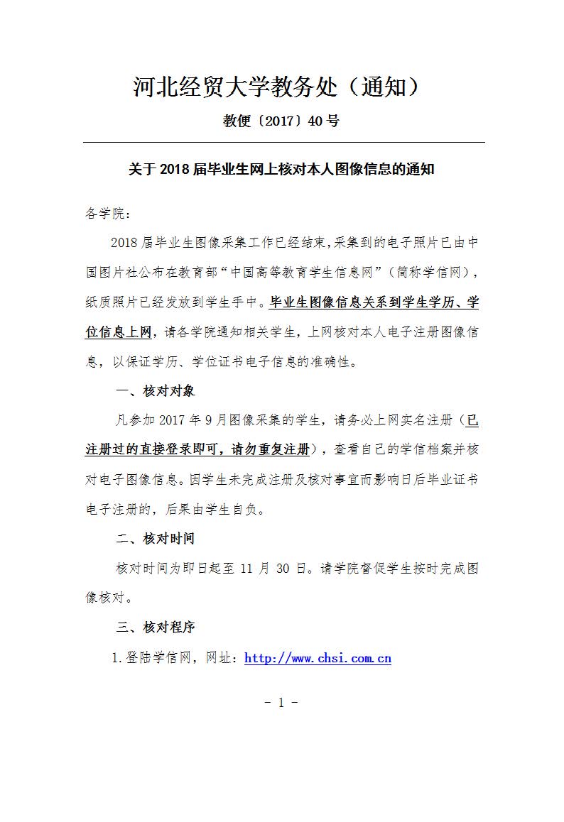 关于2018届毕业生网上核对本人图像信息的通知