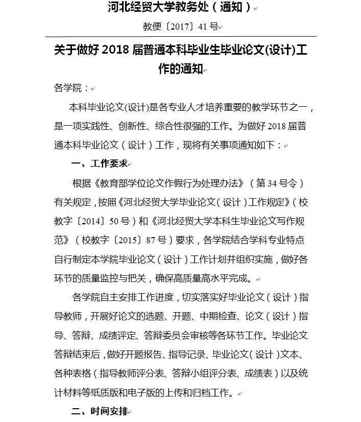 河北经贸大学教务处关于做好2018届普通本科毕业生毕业论文(设计)工作的通知