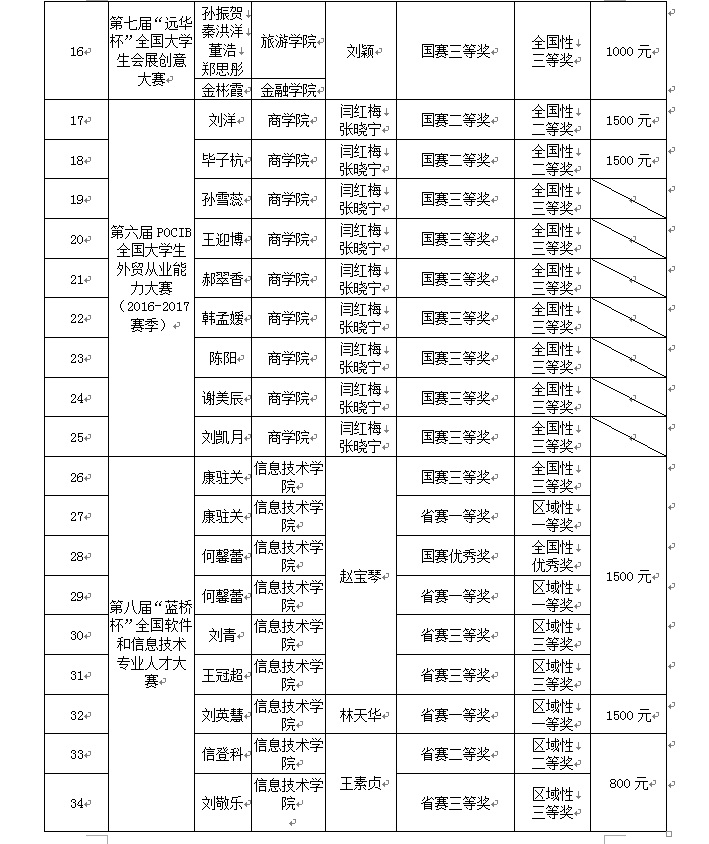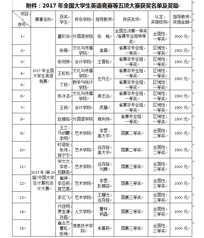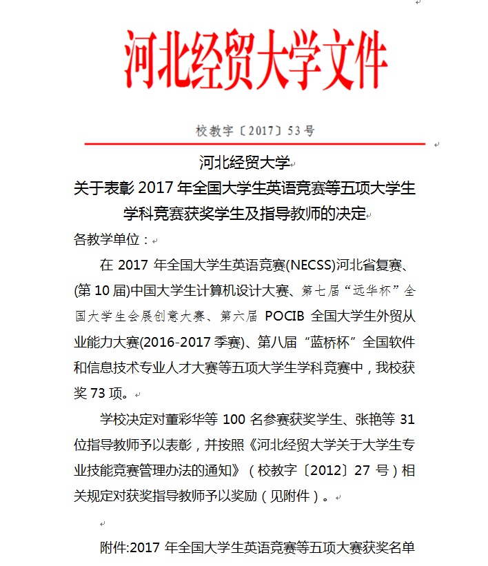 河北经贸大学关于表彰2017年全国大学生英语竞赛等五项大学生学科竞赛获奖学生及指导教师的决定